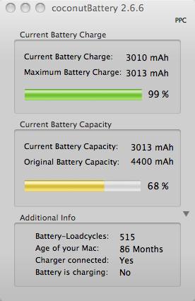 PowerBook, Mac OS X (10.5.8), G4 1.5ghz, 2gb RAM