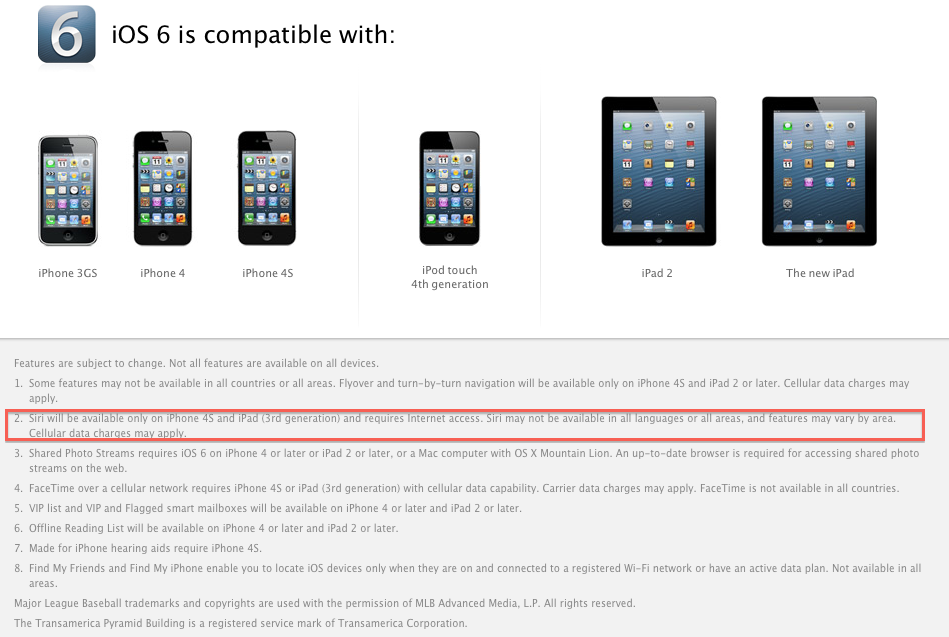 Siri will be available only on iPhone 4S and iPad (3rd generation) and requires Internet access. Siri may not be available in all languages or all areas, and features may vary by area. Cellular data charges may apply.