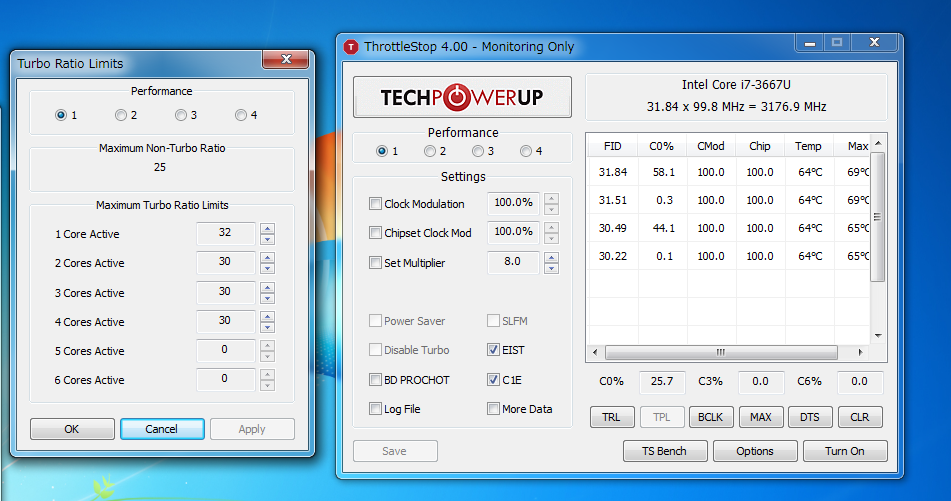 • When you execute the Throttel Stop, so that can be set to 32 times the Target P-State of Turbo Boost, will be able to raise up to 32 times also (Current P-State) magnification of the CPU.