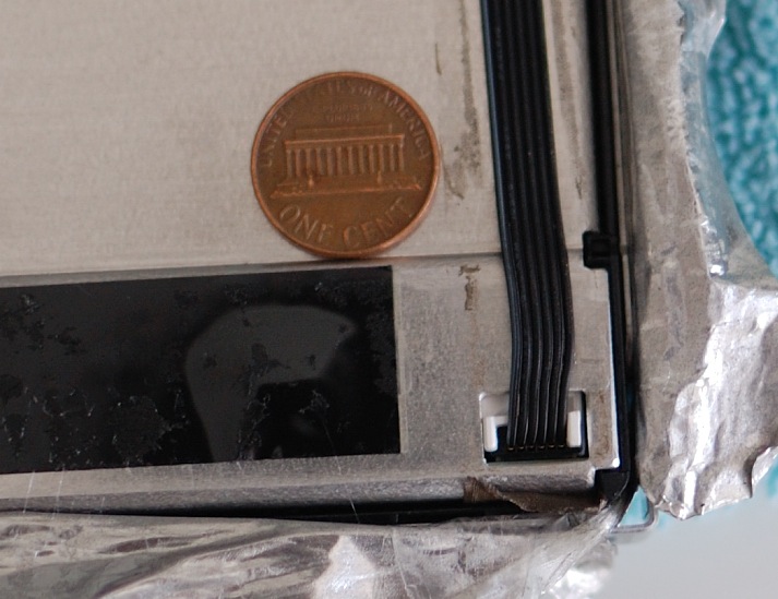 Once the glass panel has been removed, you must find where is the best point to apply pressure to get rid of the dimming/darking/flickering. The most common point is the left side between the rubber band of the screen and the grey band below. (See the photos for better understanding).