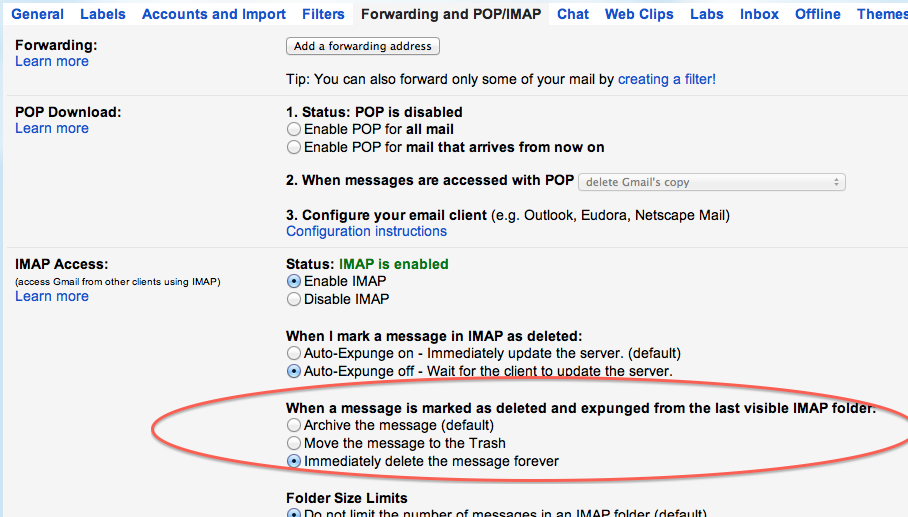 I, recently, discovered a Gmail behavior that I wasn't aware of. Whenever I deleted an email from my Inbox on my MacBook, it wouldn't, actually, delete from Gmail. Instead, a copy of the mail would remain in Gmail's "All Mail" folder. It seems that Gmail and I have different ideas about deleting. When I delete, it means that I would, actually, like to get rid of it, not hide it somewhere else. After sorting through the, almost, 3000 emails in the "All Mail" folder and re-deleting everything that I thought I had already deleted (a pain, to be sure), I found the solution to my problem. In Apple Mail, I checked both Trash options in my account preferences then selected Gmail's "Trash" folder and used the "Use This Mailbox For" option to map it to Mail's trash (similarly, I mapped the trash folder on my iPhone to Gmail's trash folder). Now, everything I delete is going to the same place (and actually getting deleted).