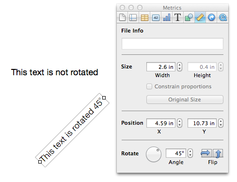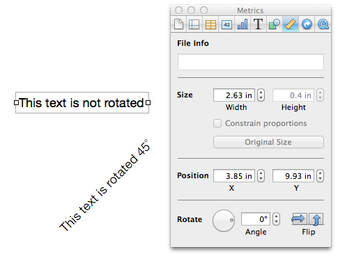 I am looking to rotate text 90 degrees. I cant seem to find this basic function in numbers.