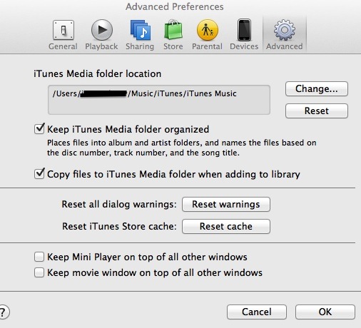 4th: Change the iTunes Media folder location back to the default/original location on the internal hard drive -