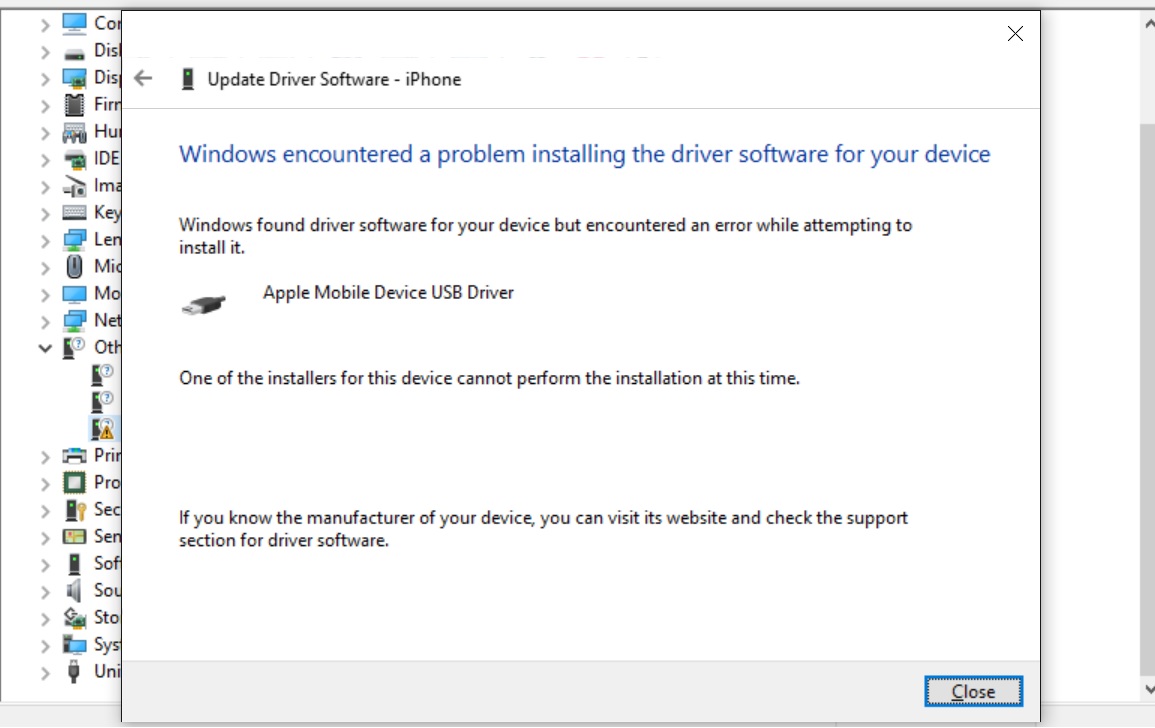 5. Hit next. The driver should install and you'll see "Apple Mobile Device USB Driver" under the "Universal Serial Device USB Driver" section in Device Manager.