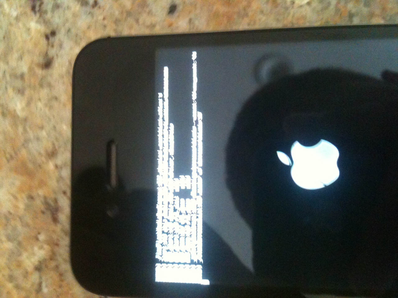 A friend of mine dropped his iPhone 4S in his pool. After drying it out with rice for a while, it got stuck in a boot/reboot cycle. That was a month or two ago. Today, he plugged it in and turned it on, and it got stuck at the boot logo and showed some scrolling text.