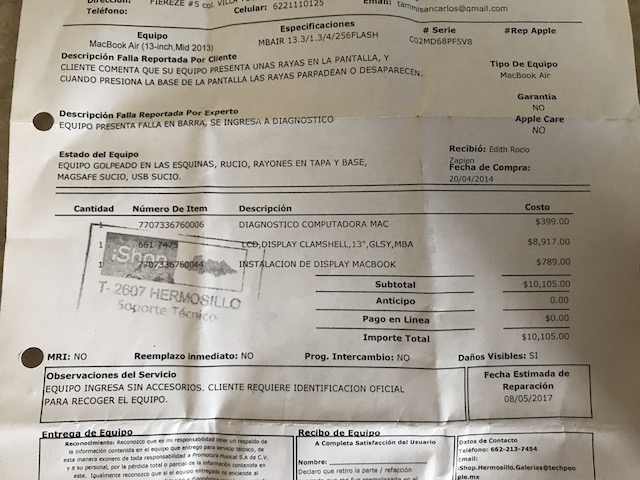Very helpful. I am an expatriate living in Mexico. I took my laptop into the local Mac store and got my quote to replace my monitor. I wasn't excited at the $10,105 peso quote, so thought to wait to take it to the USA to get it replaced there. Now I'm thinking I should be happy. At today's exchange rate of $18 X $1 the repair cost is about $561 usd. I had heard $300+ in the states... yikes. Going to get it repaired here. It's interesting how the prices differ between countries. I always assumed Apple was fairly consistent.