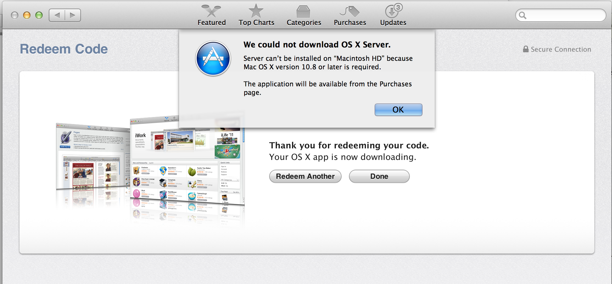 Mountain Lion redemption code has already been used