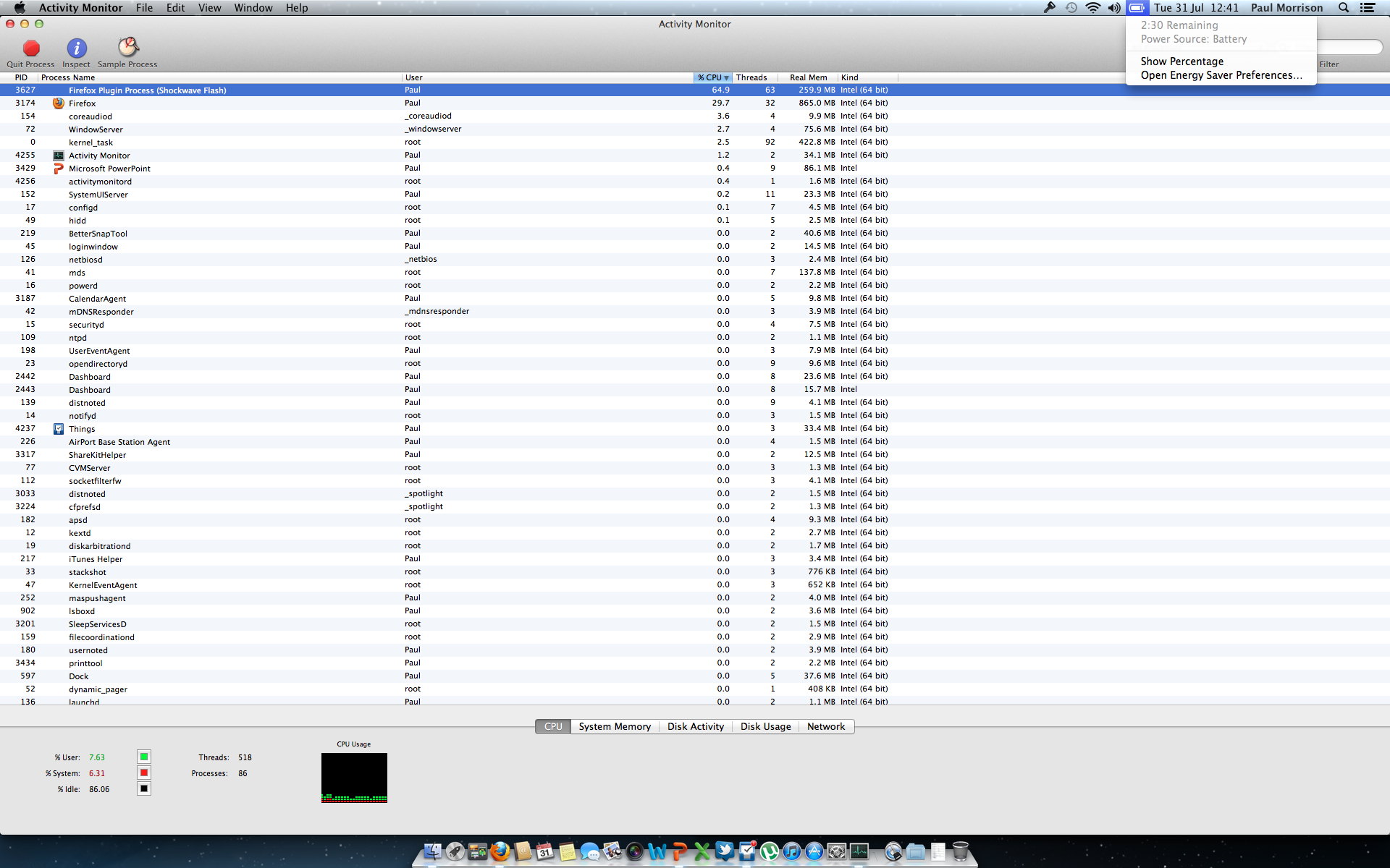 If you've just upgraded, there is a lot going on. Give your system a little time to "settle down" first. Battery performance under Mountain Lion should be similar to what you were getting with Lion. Also... some people use real-time virus scanners. As an OS upgrade replaces a significant percentage of your files, a virus scan can also be quite intensive... especially when it happens along with indexing.