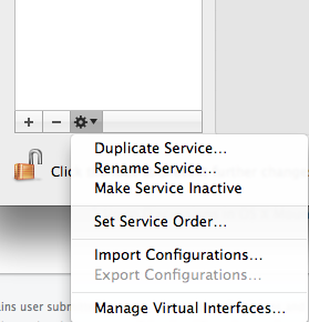 Go to Network Preferences then in the lower left click the service 'wheel' icon.