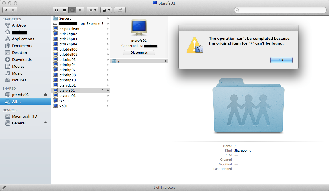 After upgrading to mountain lion, I am unable to mount SMB shares from my windows SBS 2011. When I use "connect to server" in the go menu, I get the screen to authenticate, I type the correct server user name and password, and then it cannot connect. When I brotse, I see the server, I connect as myself, and the finder shows directory "/". When I try to go farther, I get "The operation can't be completed becausse the original item for "/" can't be found. I am in a domain environment. The "kind" is Sharepoint, which leads me to believe it connected to sharepoint instead of my SMB shares.