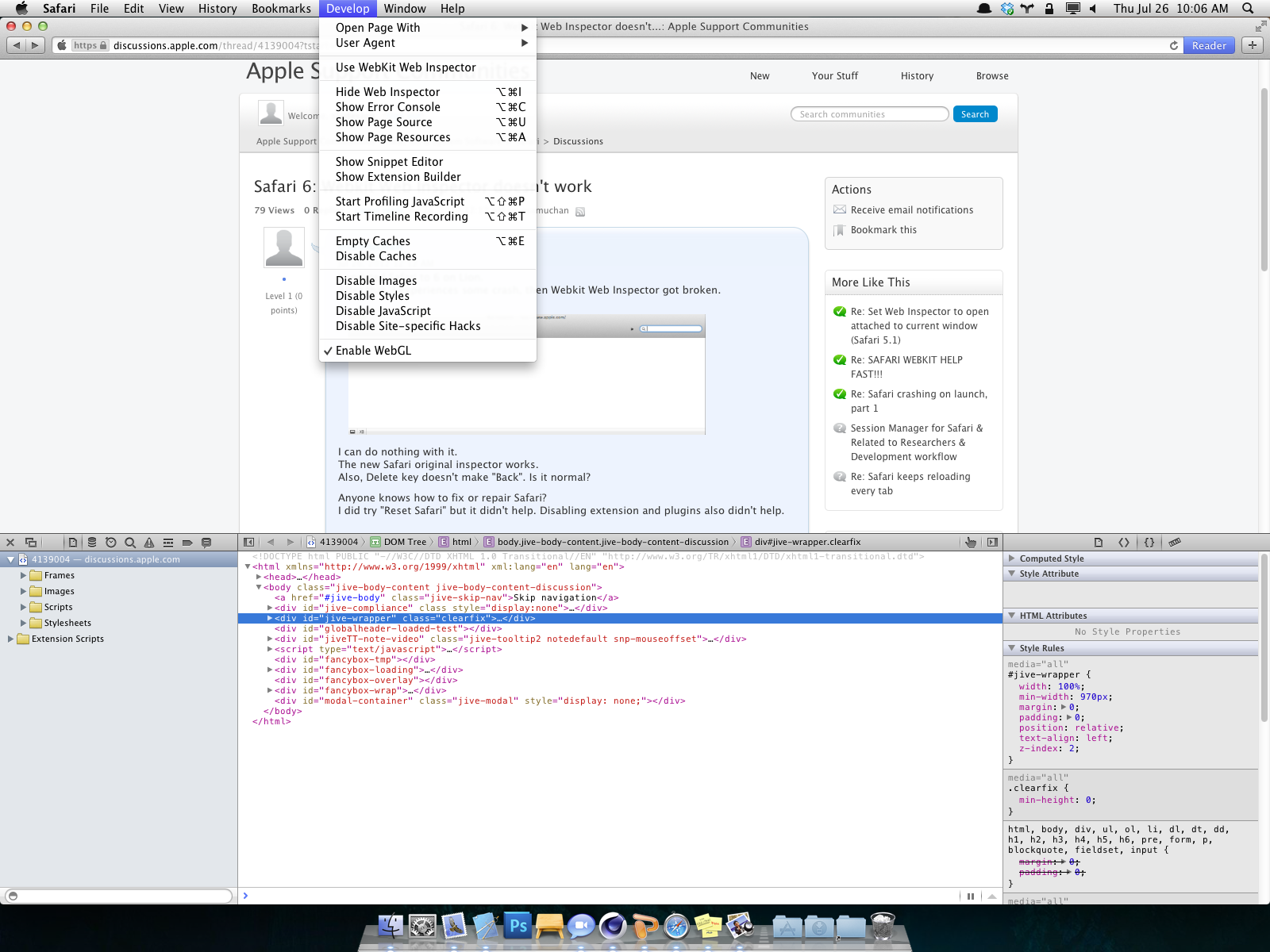 After that, I experiences some crash, then Webkit Web Inspector got broken.