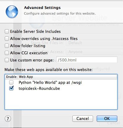 With Roundcube setup as a webapp, you can enable/disable it per site via the Server app, Web, Site, Advanced Settings (you will see a new "topicdesk-Roundcube" webapp