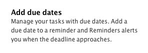 This is a very good solution @Barney-15E. Since your template will have a date, if you create a "Templates" list, you can choose to put your "manufacured" reminder there (see below to "manufacture one") so it's easy to find with it's old expired due date and no reminder set. Then when you want to use it copy it, click on the due date in the mini calendar and paste it in, the due date will be set for that day at the template time.