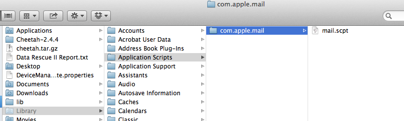 did a repair permissions. found a few small things, but not mail or applescript related.