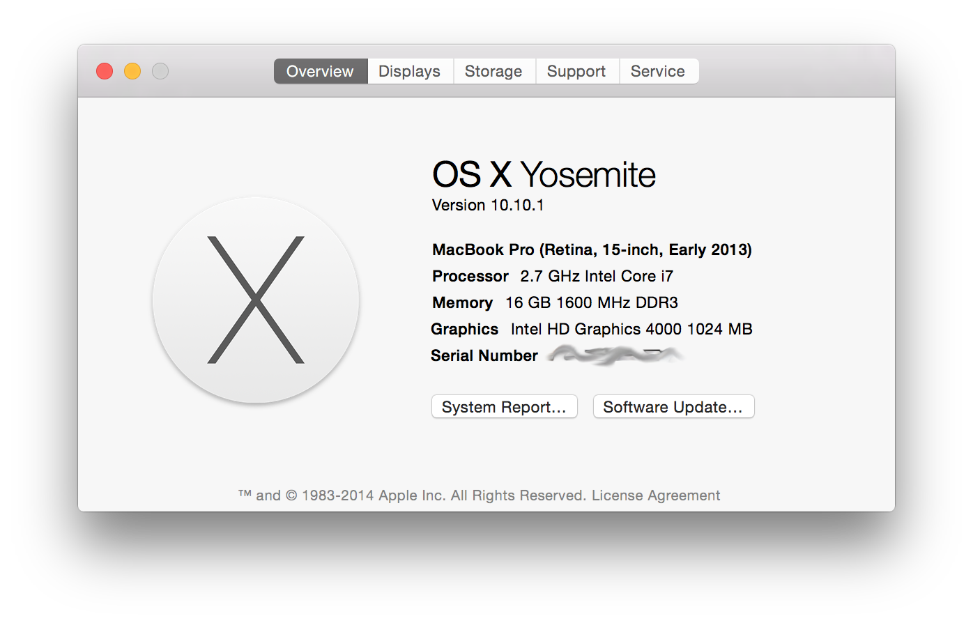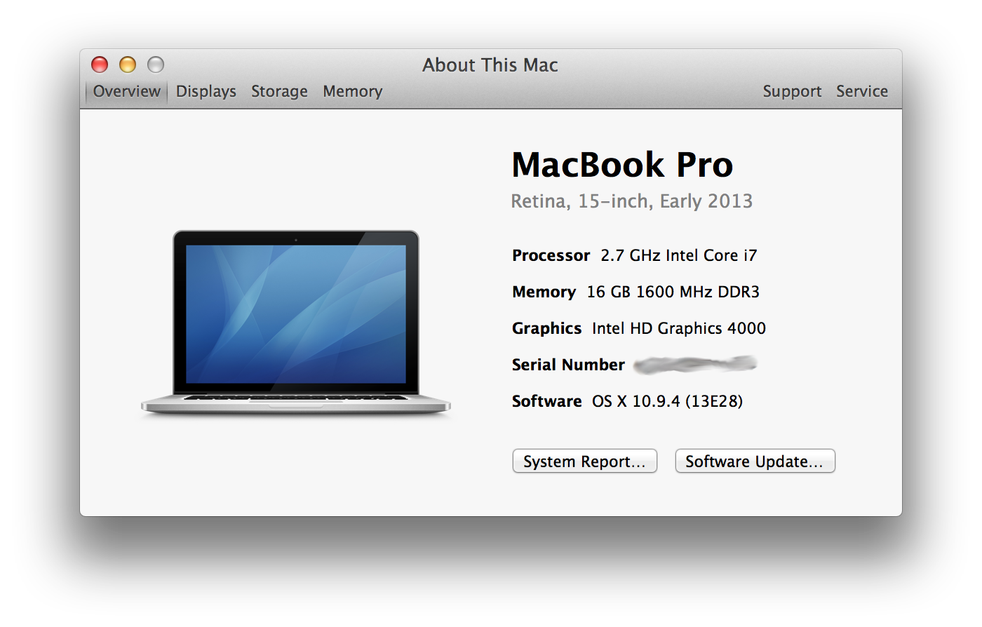 Brand new rMBP, as of June 2014. Running 10.9.3. I can't be sure if I had this problem out of the box, or if it appeared after some use. I think it may have been a problem right out of the box, but I probably didn't notice it until after a week or so, and I had everything all installed and set up.