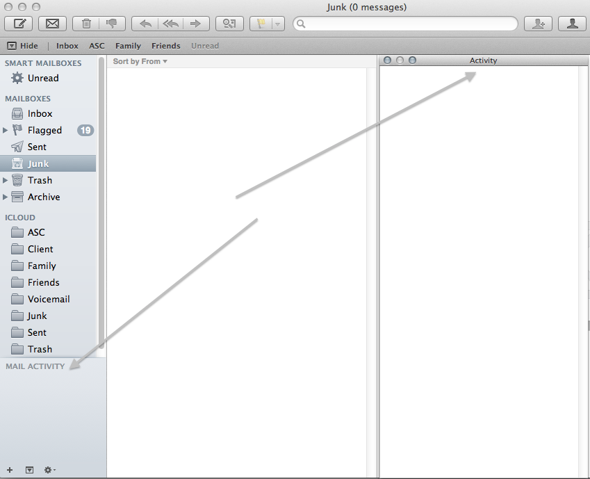 the sidebar pane doesn't show as much information nor does it show the status/activity per account, it is practically useless. the activity window can't be docked to the main mail.app window and it doesn't minimize/hide with the main app and has to be manually delt with every time you minimize the app. both solutions are half-baked at best.