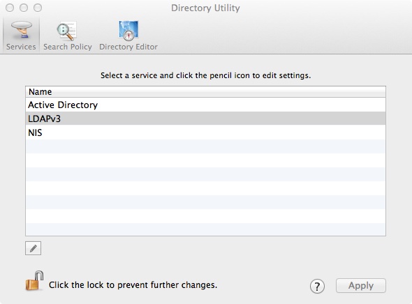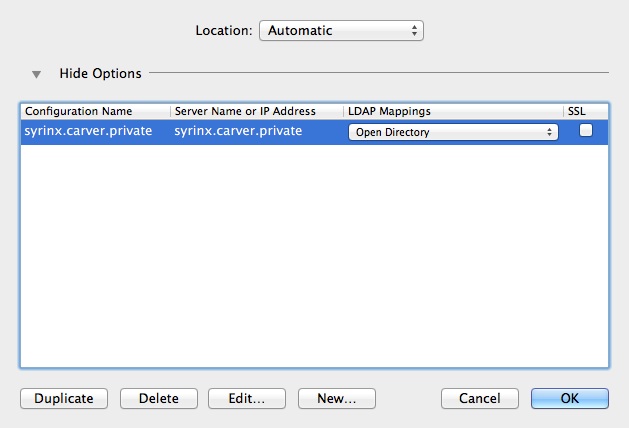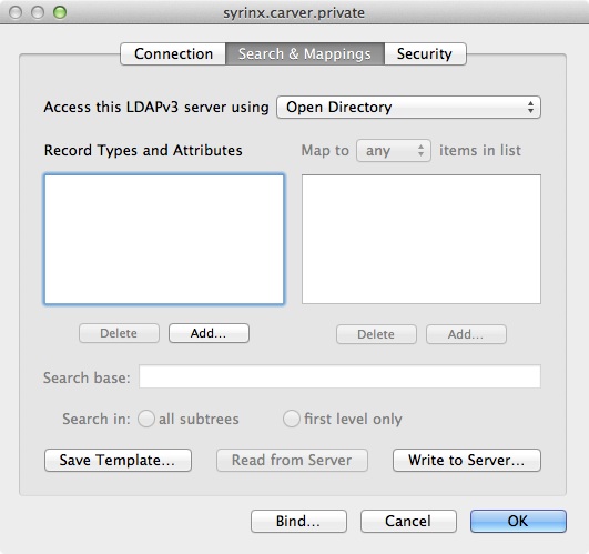 I then selected "Open Directory Utility". From your comments, and reading http://en.wikipedia.org/wiki/Apple_Open_Directory I deduce that the "LDAP" listed below is in fact the Open Directory service that should be provided by my Mac Mini Server syrinx. Is that correct?