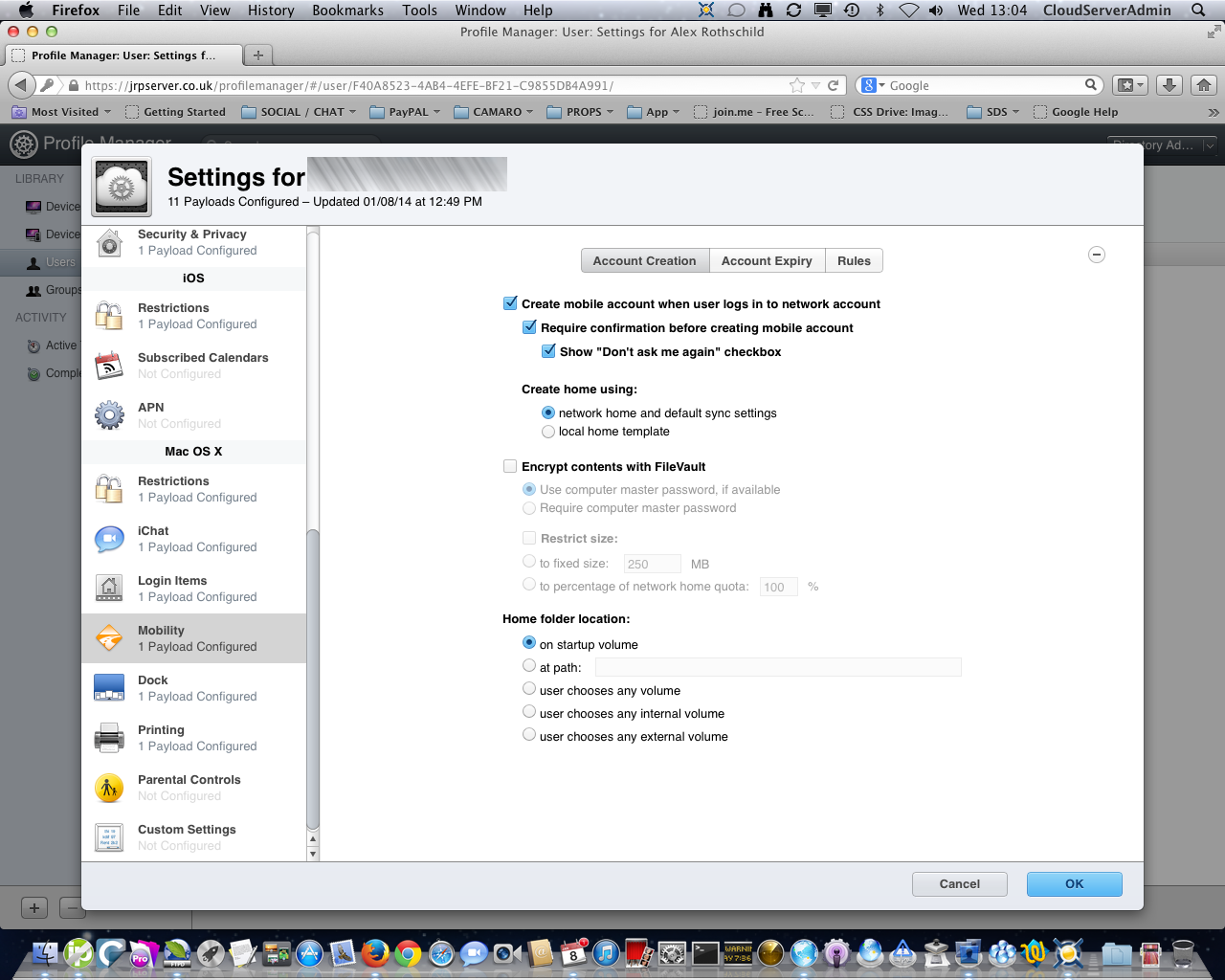 But what I haven't been able to see in the documentation or anywhere else is Portable Home Directories. In my current setup, I have a 10.6.8 Server and 10.7 clients. On these clients is a single local administrator acocunt and the rest are 'managed mobile accounts'. These are local acocunts. They work when away form the network on which the server is, but when in range of the server, the server may push settings and stuff. And on login/logout and when connected to the LAN and during work, the home directory of the user is constantly synchronized with a copy of the user's home directory on the server. This means my users can take any computer and get their own account and a synchronized copy of their home directory. They can also take a laptop off line for a while and when they return to my LAN (either physically or by VPN), any changes will be synced. This is a sweet setup and it works with 10.7 clients and 10.6.8 server.