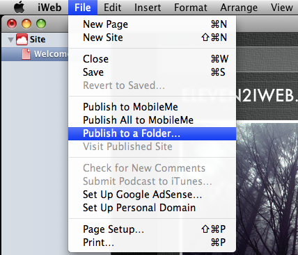 Depending on the version of iWeb you are using you have a couple of publishing options: