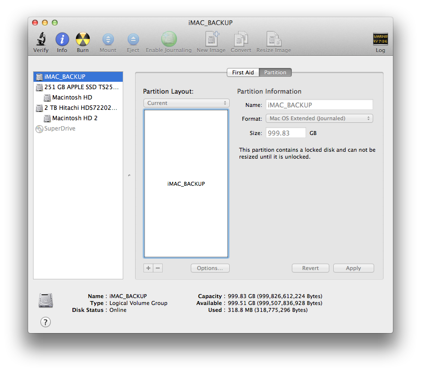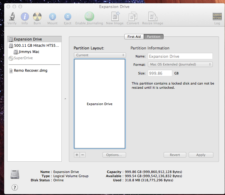 When I connect the drive it does not show up in Finder. When I open Disk Utility, the drive shows up, but will not allow me to make any changes. All of the tabs are gone except for first aid and partition, and it will not allow me to create a partition on the drive. It says "The partition contains a locked disk and can not be resized until it is unlocked".