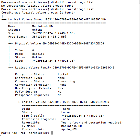 When I connect the drive it does not show up in Finder. When I open Disk Utility, the drive shows up, but will not allow me to make any changes. All of the tabs are gone except for first aid and partition, and it will not allow me to create a partition on the drive. It says "The partition contains a locked disk and can not be resized until it is unlocked".