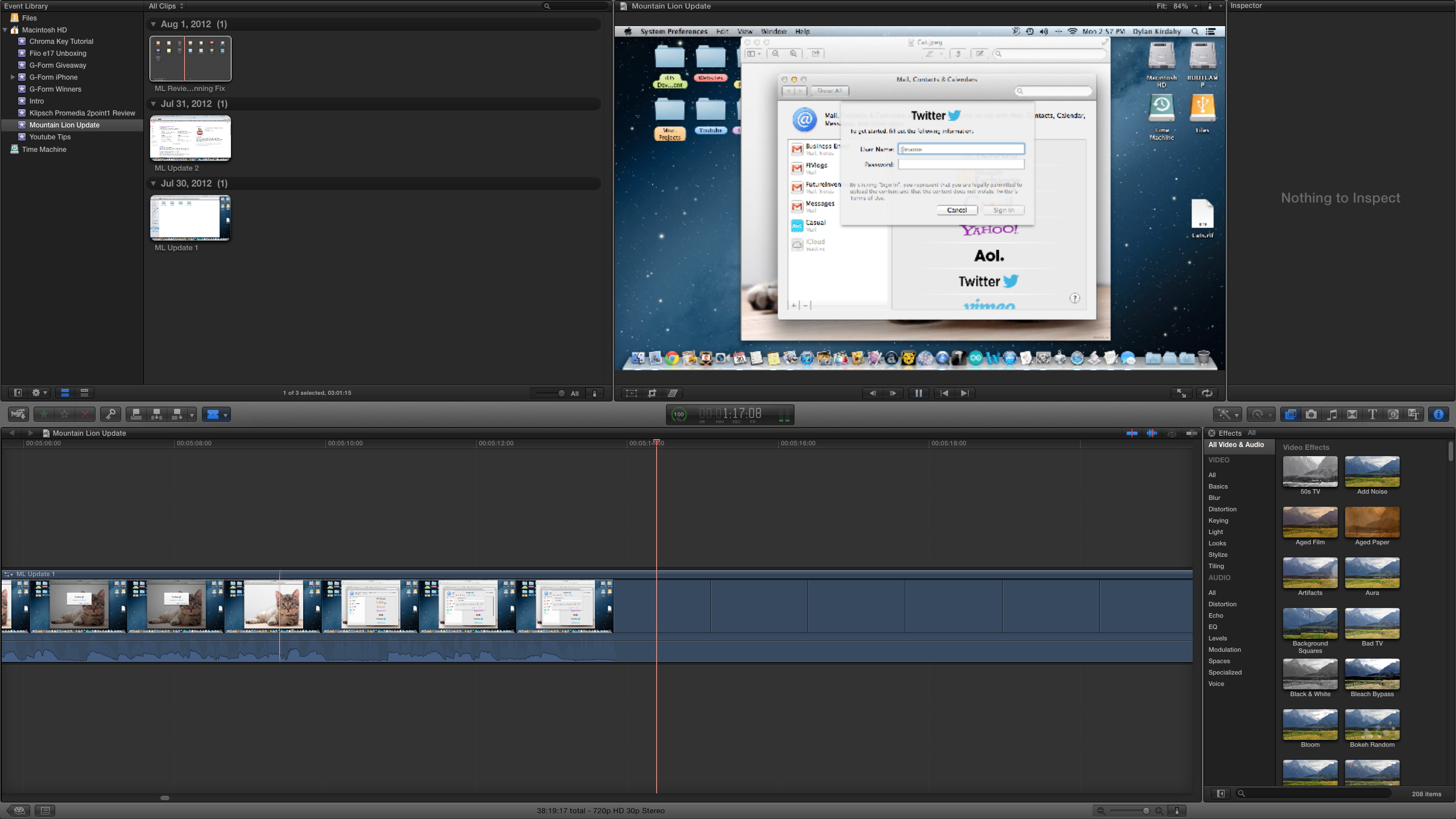 1. My biggest issue is that the share menu is grayed out, even when I'm in a project. I have tried everything, and the only thing that works is re-installing FCPX, but it is grayed out again the second time I open it. This has happened even before Mountain Lion.