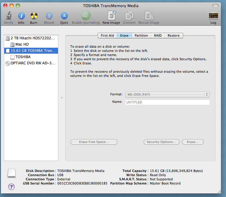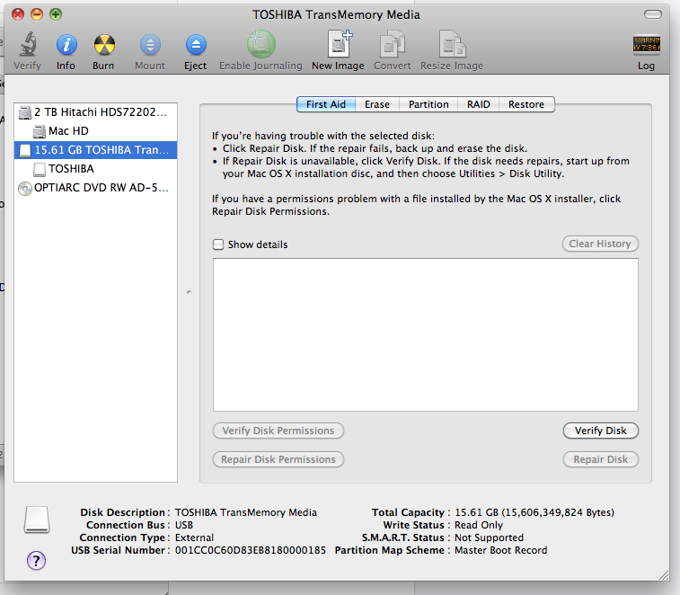 I have a Toshiba 16 GB memory stick and had copied items on there successfully. Now it shows me that international no sign in white when I try to drag an itme into it. The items all open correctly and there is almost 5 GB left on it. The trash has been emptied as well. I have a second one that works correctly. What is going on and how can I fix it?