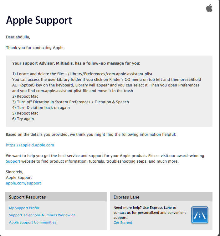 Recently, Dictation just stopped working - I followed your instructions, but sadly, it is still not working.