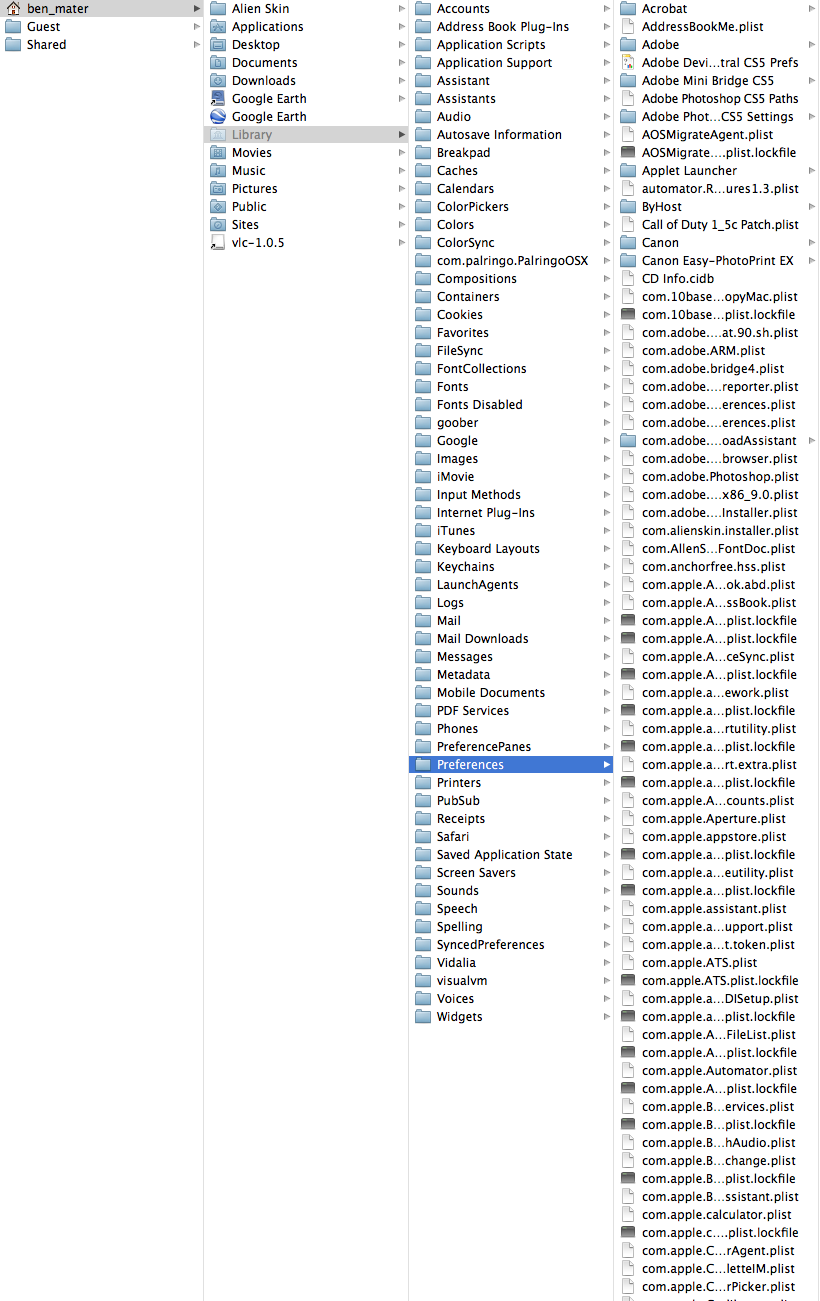 Can someone explain to me why I can't find the file under /Library/Preferences UNLESS I use the GO menu like stated above? I just browsed my way to the \Library\Prefernces folder on my iMac hard drive, and I see a different set of files than if I access it through the GO menu. What am I missing here? Am I not understanding something about the file structure here?