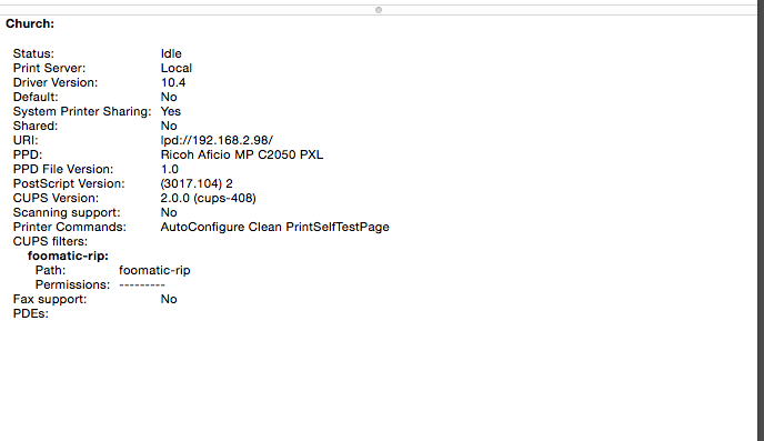 My office windows pc is printing fine to the RICOH Aficio. The driver on here is a RPCS Printer Driver (v. 8.60). The office tech-support will only take care of pc setup - thus I'm on my own when it comes to setting up the printer from my MB!