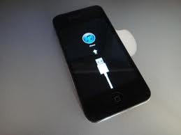 Turning it on shows the Apple logo for 2-3 seconds, then the screen shown below for about 20 seconds, then the iPhone turns itself off - unless plugged.