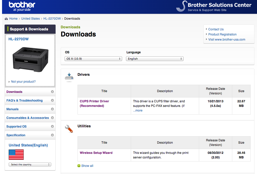 1. After you've unpacked the printer, installed the toner and paper and printed a test page, go to the Apple web site and search for Brother printer drivers. Apple has all the latest drivers for download free.