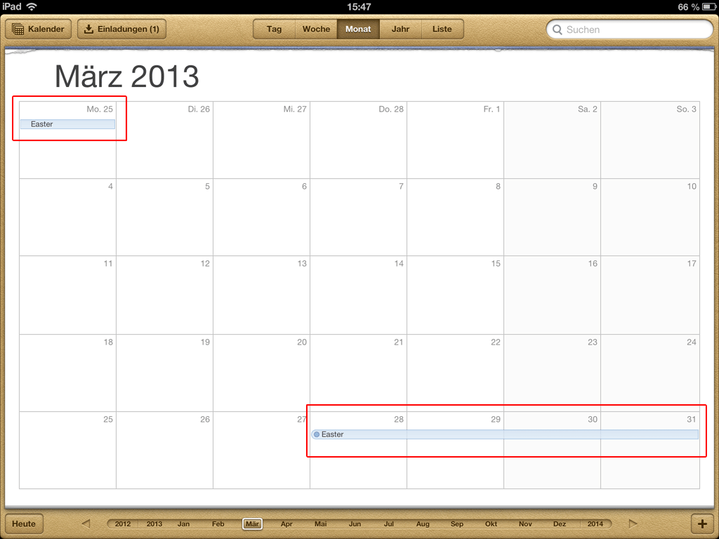 iPad calendar march 2013 problem
