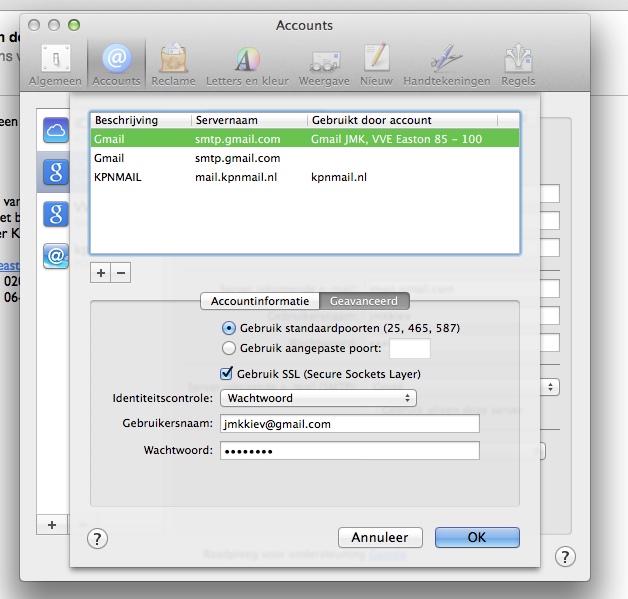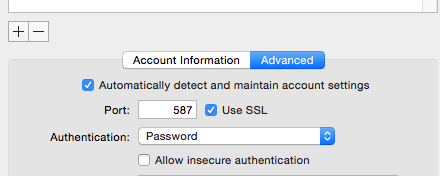 Once I filled everything in here, my issue of sending emails was resolved. What had me confused is that there are actually TWO DIFFERENT places within Mail Preferences where you check the SSL box...once for Incoming and once for Outgoing Mail.