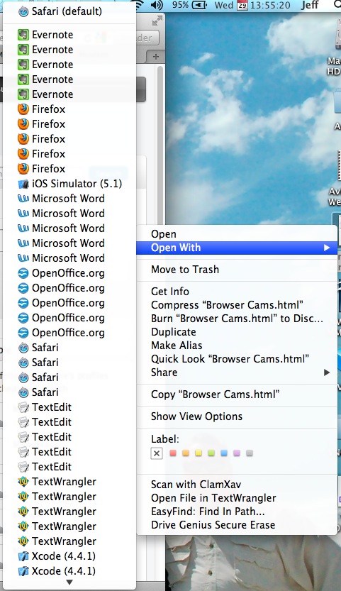 Is there something different that has to happen, to remove duplicate entries from the "Open With" menu, under OS X, Mountain Lion?