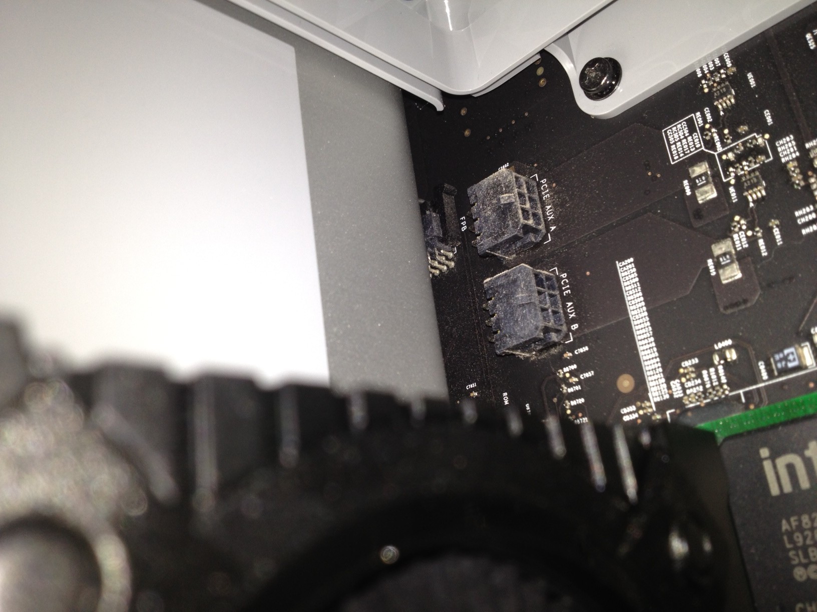 here is my dilemma, I just recently purchased a new graphics card to go into my 2009 Mac Pro tower running 8 core 2.26. Now this new graphics card needs power to work since it is a high performance card. The problem I have is I dont know where to plug in to get the power other then from the PCIe aux A and B ports. Those ports are empty with no cords plugged in, and I cant seem to track down the right cord to then connect to my power cord to then connect to my new graphics card. And like everything apple these 6 pin ports look alot smaller then the typical pcie 6 port connector. Now if anyone has a mac pro that connects to these ports and can share some insight that would be great!