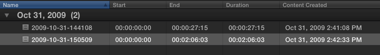 I have some clips that I transcoded from AVCHD to MOV (Apple ProRes 422). The creation date of the MOV file was, of course, the date I did the transcode, so I am trying to adjust the date to the orginal create times. I used the Modify -> Adjust Content Created Date and Time. The correct date is 2009-10-31 (October 31, 2009).
