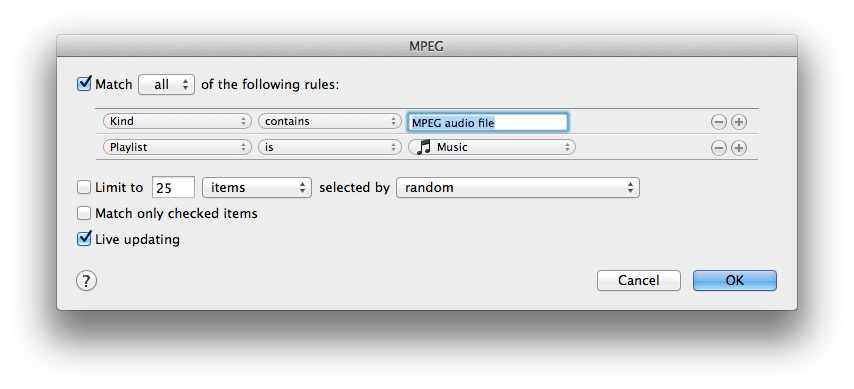 2 - Create a new smart playlist as shown below.