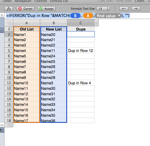 I'm looking for a way to compare the data from two columns so I can find the unique results and display that data in a third column. To be specific, here's what I'm doing.