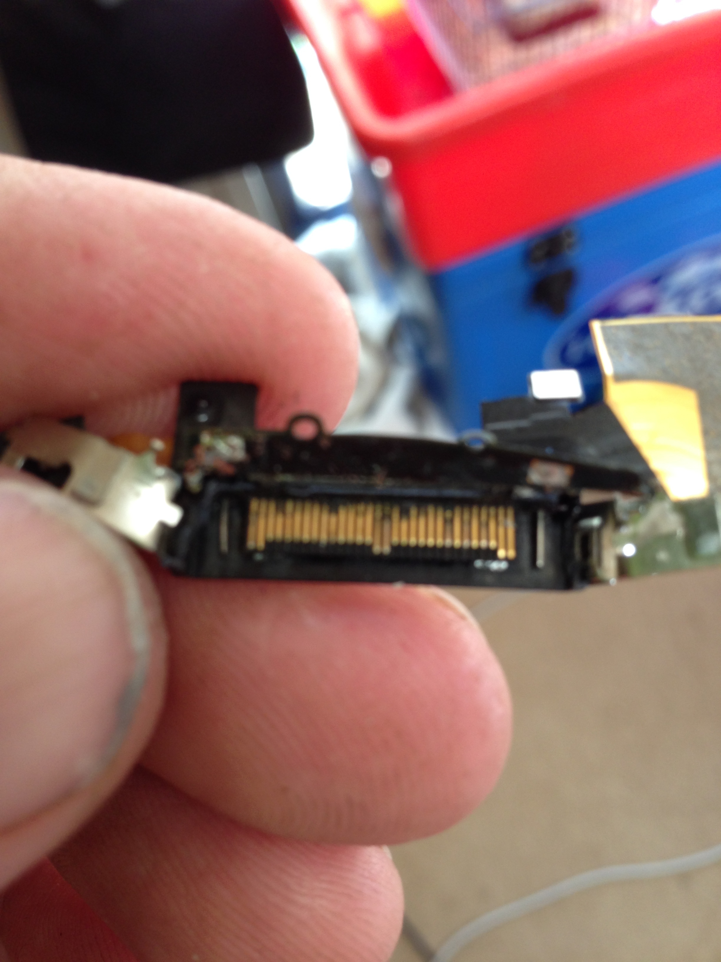 After reading similar problems on forums etc it sounded as though my issues were caused by a dock connector problem and the fact that the pins may be 'shorting'. I tried cleaning the port with a dry toothbrush but this didn't solve anything and I was still having the same problems.