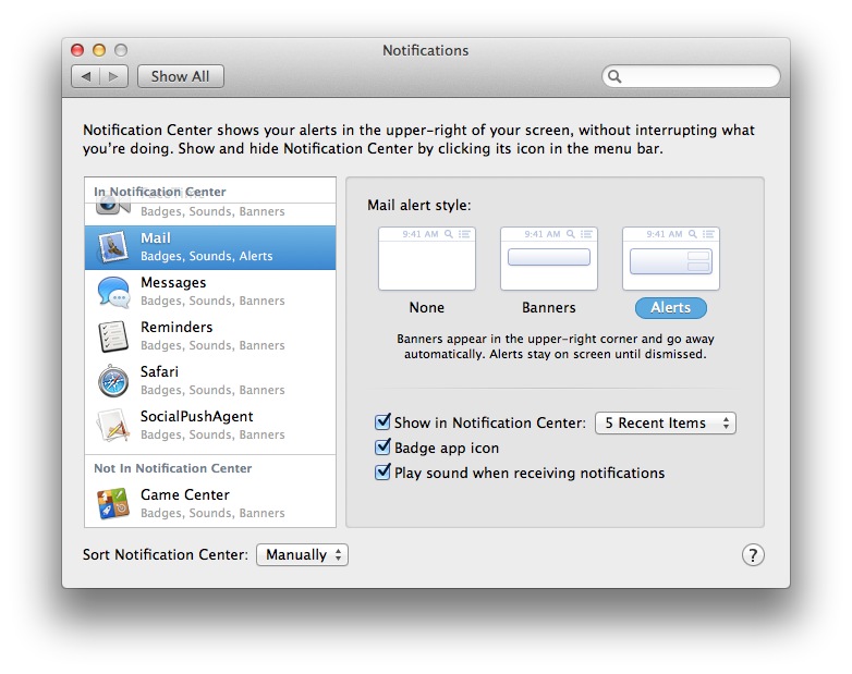 I already went to System Preferences > Notifications and set Mail Alert Style to "none" and also unchecking notification center, badge app icon and sound options.