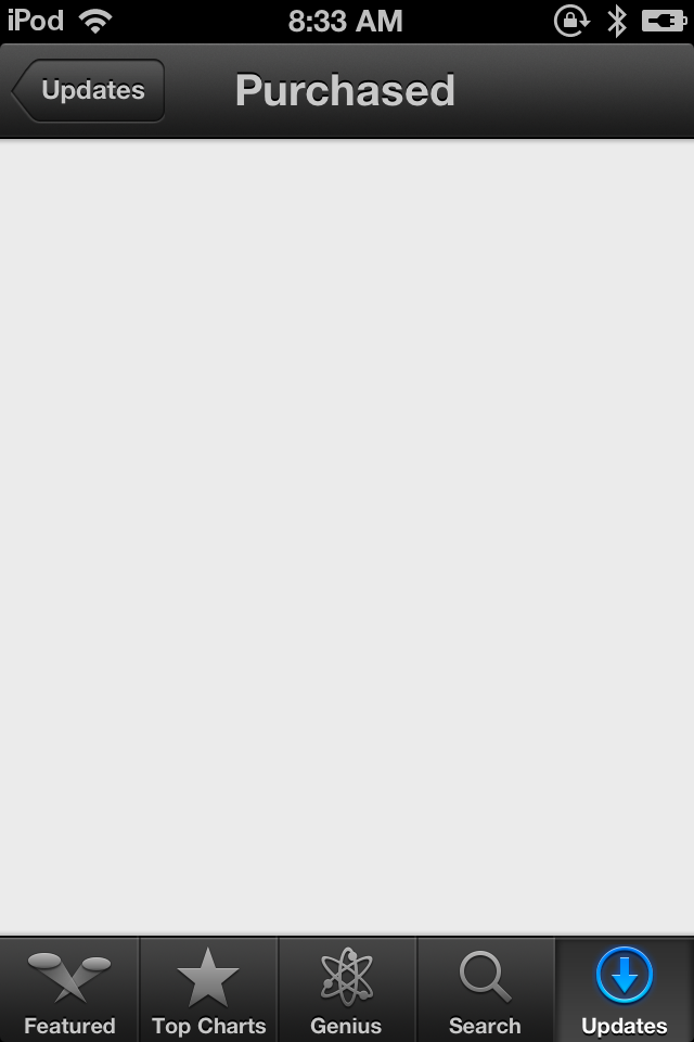 After upgrading to iOS 6 my iPhone 4s can't display purchased apps. I start the App Store, touch updates and then touch purchased. I get a spining circle with Loading... for about a minute and then the App Store just exits and I'm back to the iPhone's first screen.