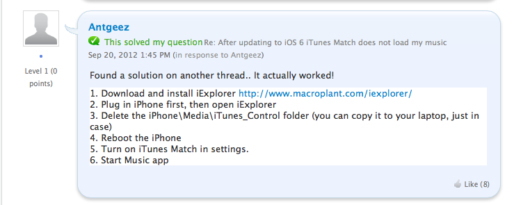 If it sounds like I am blaming Apple, I suppose the truth hurts. Apple created the iPhone, the OS, iTunes Match, the Music app, they serve the content through iTunes Store, they control the distribution of the upgrades that most of us install faithfully and to the letter. It is all Apple's world all the way. It is not like Windows where Microsoft can point to the hardware manufacturer saying it is their fault and the HW mgfr points to MS saying it's their fault. I suppose I have grown complacent in my expectations.