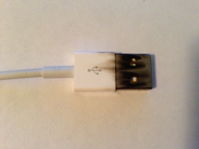 Lightning cable included with my iPhone 5 (Note the depth of the notch):