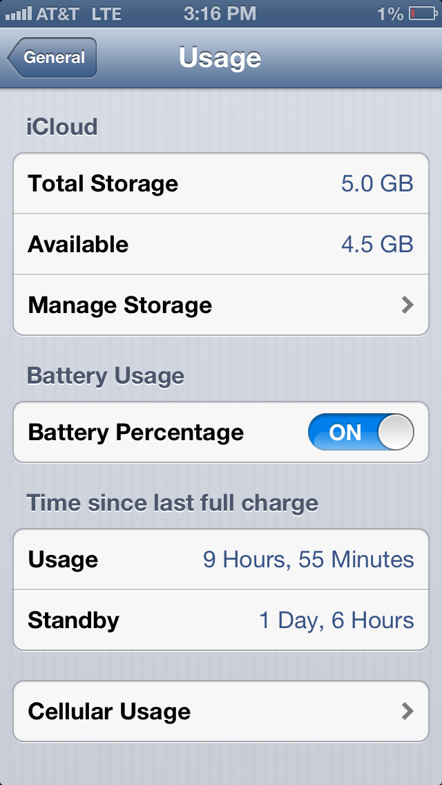 I continued this practice for the few weeks leading up to my discovery...battery life was horrendous, wouldn't get more than 12 hours out of a full charge with light txting, email check and a few games of cribbage. I was out of town and didn't have the iPad charger with me so I used the 5W adapter for the night. Full charge with many phone calls, a lot more messages sent and received and being bored in the room a crapload more cribbage played and after 10 hours, still 60%?????? Really???