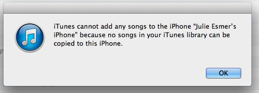 iPhone 5 / iOS 6: Can't sync music via iTunes anymore (Screenshot attached)