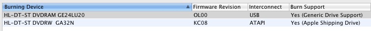 I have both optical drives showing in the hardware info Disc Burning device list now and the external actually works fine.
