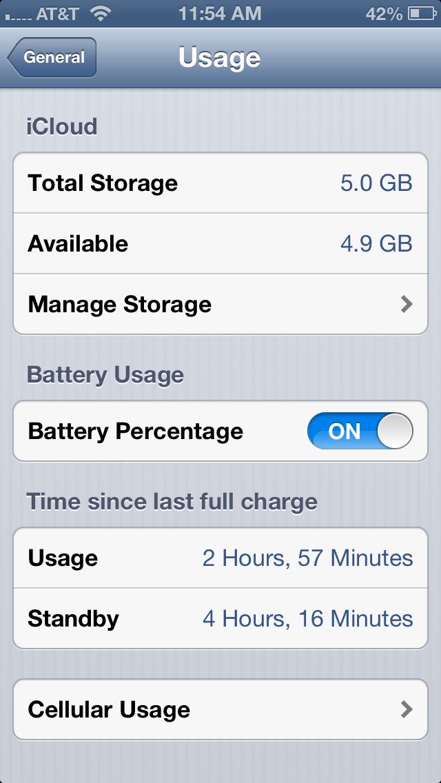 Thanks for your reply. I also had a 3GS and 4. Usage on those two devices was far different than the 3/5 ratio you indicate for your 5, and the 4/5 ratio I am experiencing with my 5.