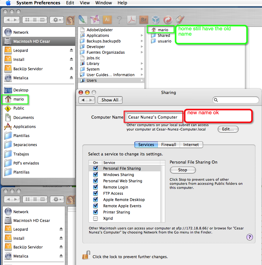 I have a Mac Pro with 10.4.11 Os I need to change the computer name for another, and I already did it with no problem via System preferences/accounts and sharing...