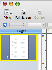 The yellow layout guides are the current version of the blue ones seen in the Pages '09 versions above. They are not on the template by default. To put them there, first go View > Show Rulers.